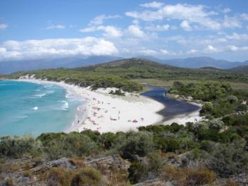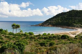 Sichelförmiger, weißer Sandstrand, bewacht von einem genuesischen Turm. Vor einem das türkisblaue Meer und hinten die Macchia mit ihrem süßherben Duft. Die Küstenstrasse liegt ca. 100m dahinter, stört aber nicht wirklich.